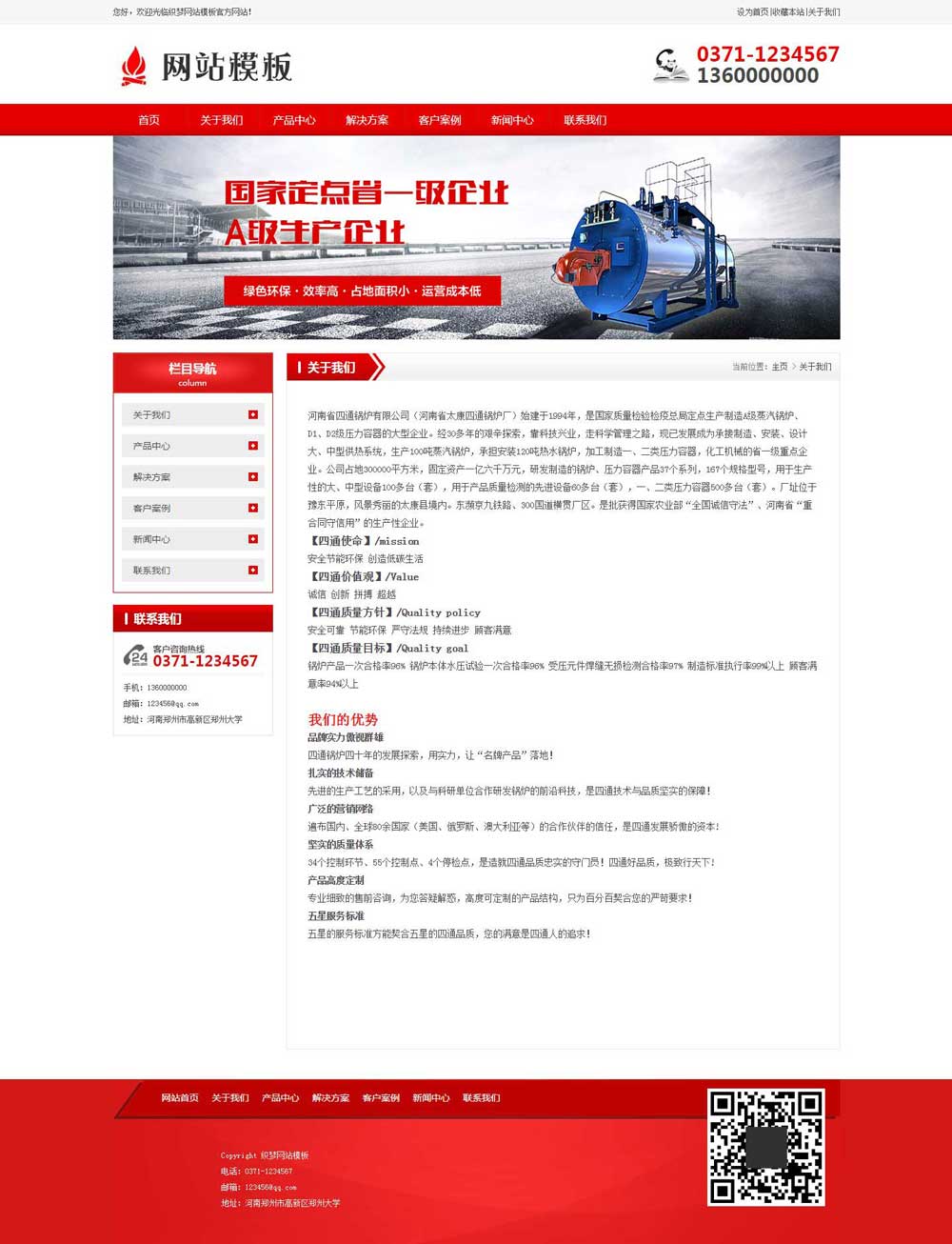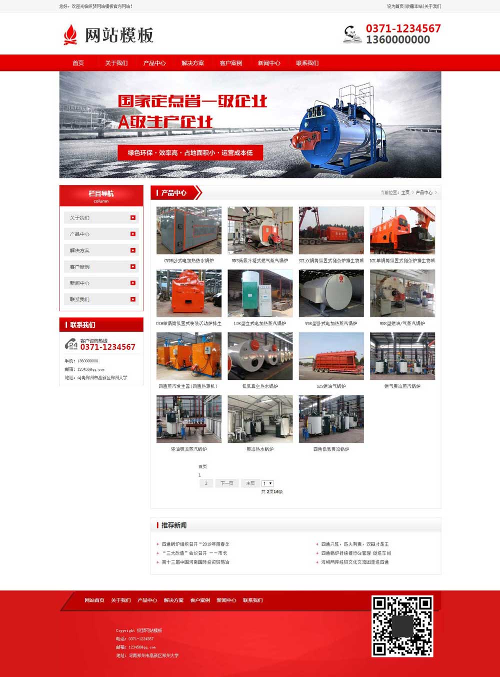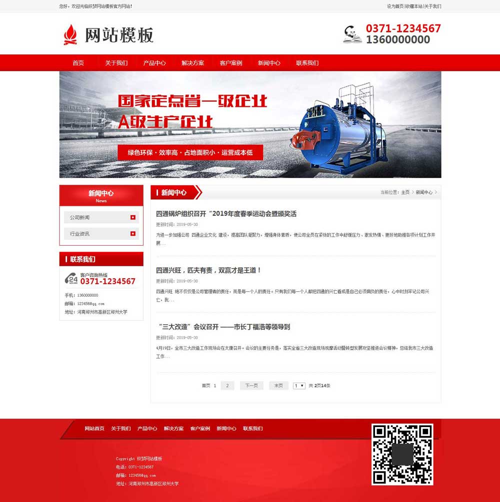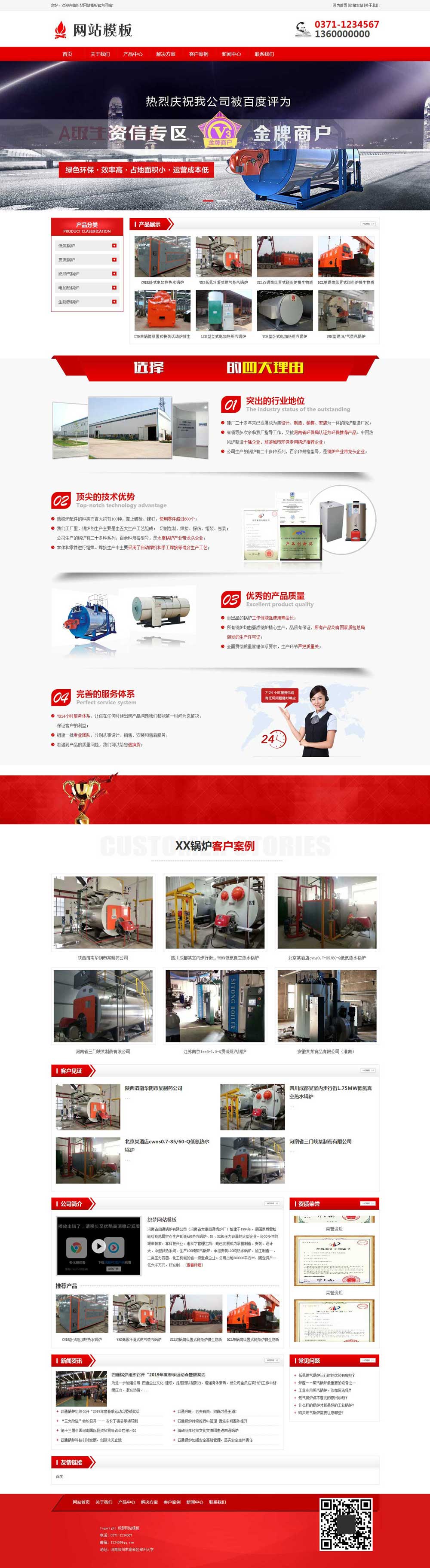 本模板首页包含产品展示块、服务优势板块、推荐案例板块、关于我们板块、案例展示板块、新闻动态板块等;