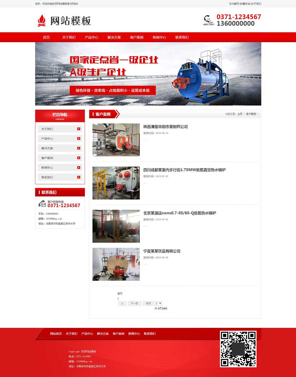 模板文件包含首页、关于我们类单页、图片案例列表页、案例详情页、新闻文章列表页、文章详情页等。