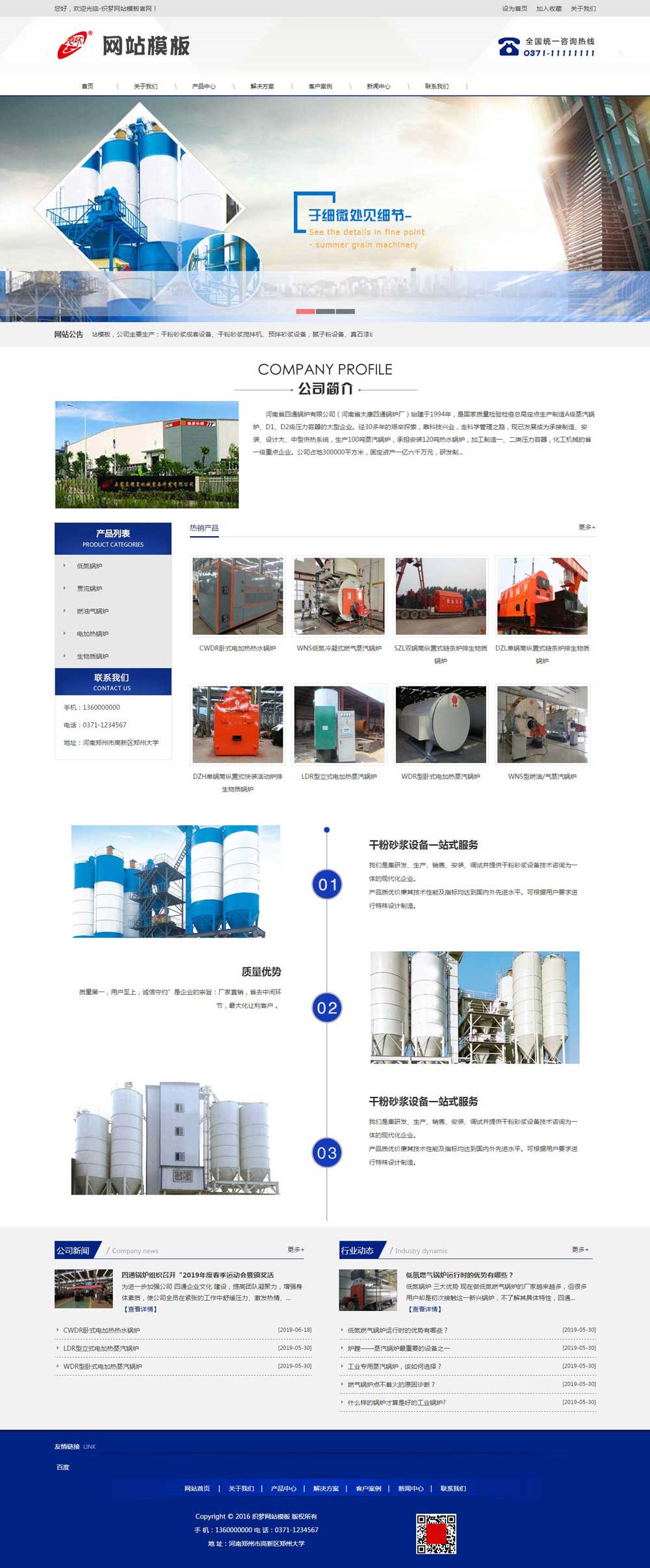 本模板首页包含关于我们板块、产品中心板块、公司优势板块、新闻动态板块等;