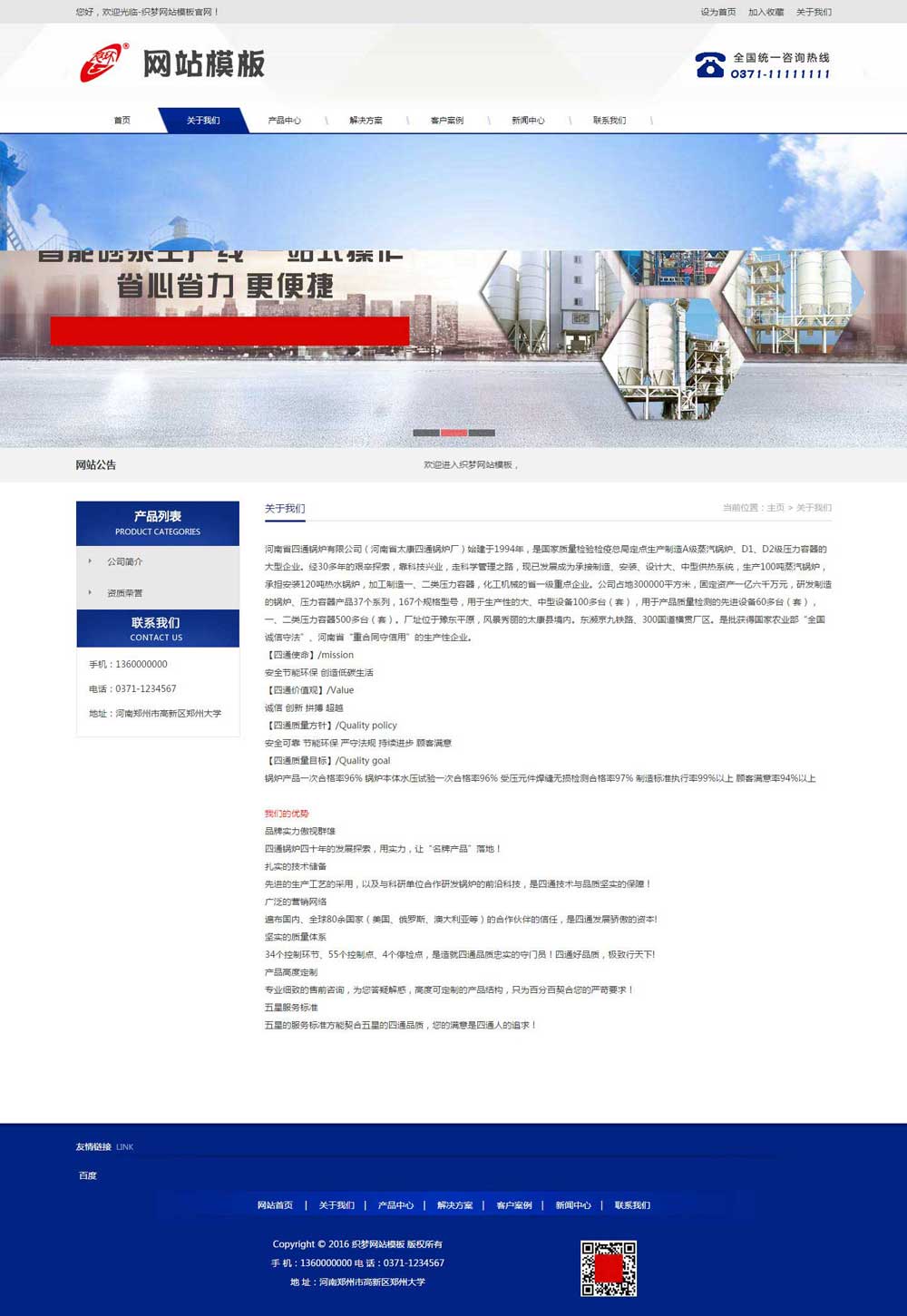 简介:蓝色建筑设备类公司网站织梦模板 本模板首页包含 关于我们板块、 产品中心板块、公司优势板块、新闻动态板块等; 模板文件包含首页、关于我们类单页、图片案例列表页、案例详情...