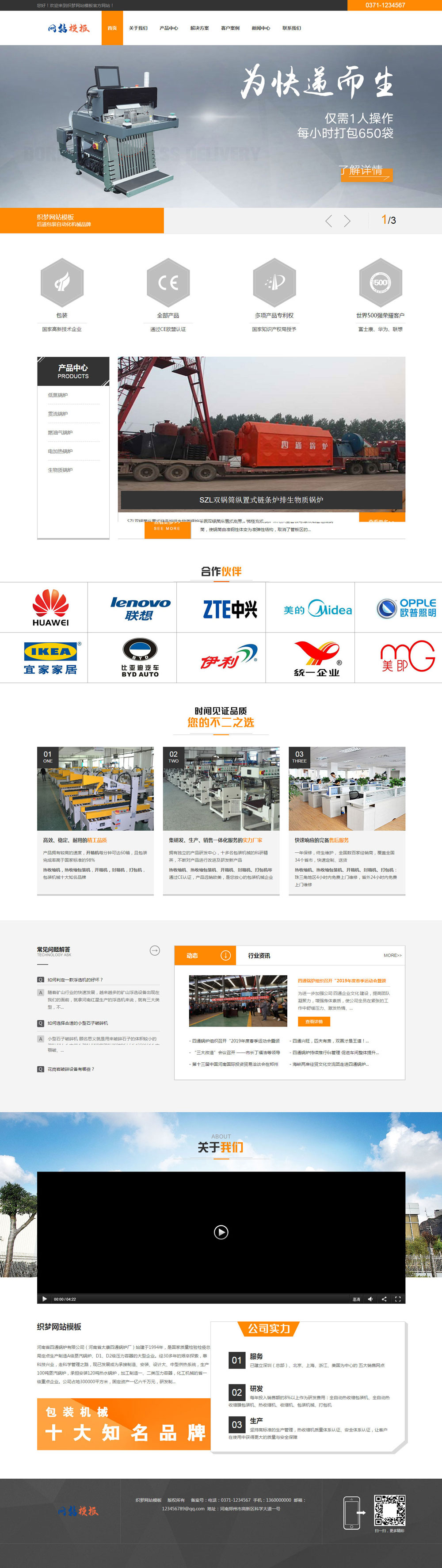 简介:橙色包装设备类公司网站织梦模板 本模板首页包含产品中心板块、合作伙伴板块、案例展示板块、新闻动态板块、关于我们板块等; 模板文件包含首页、关于我们类单页、图片案例列...