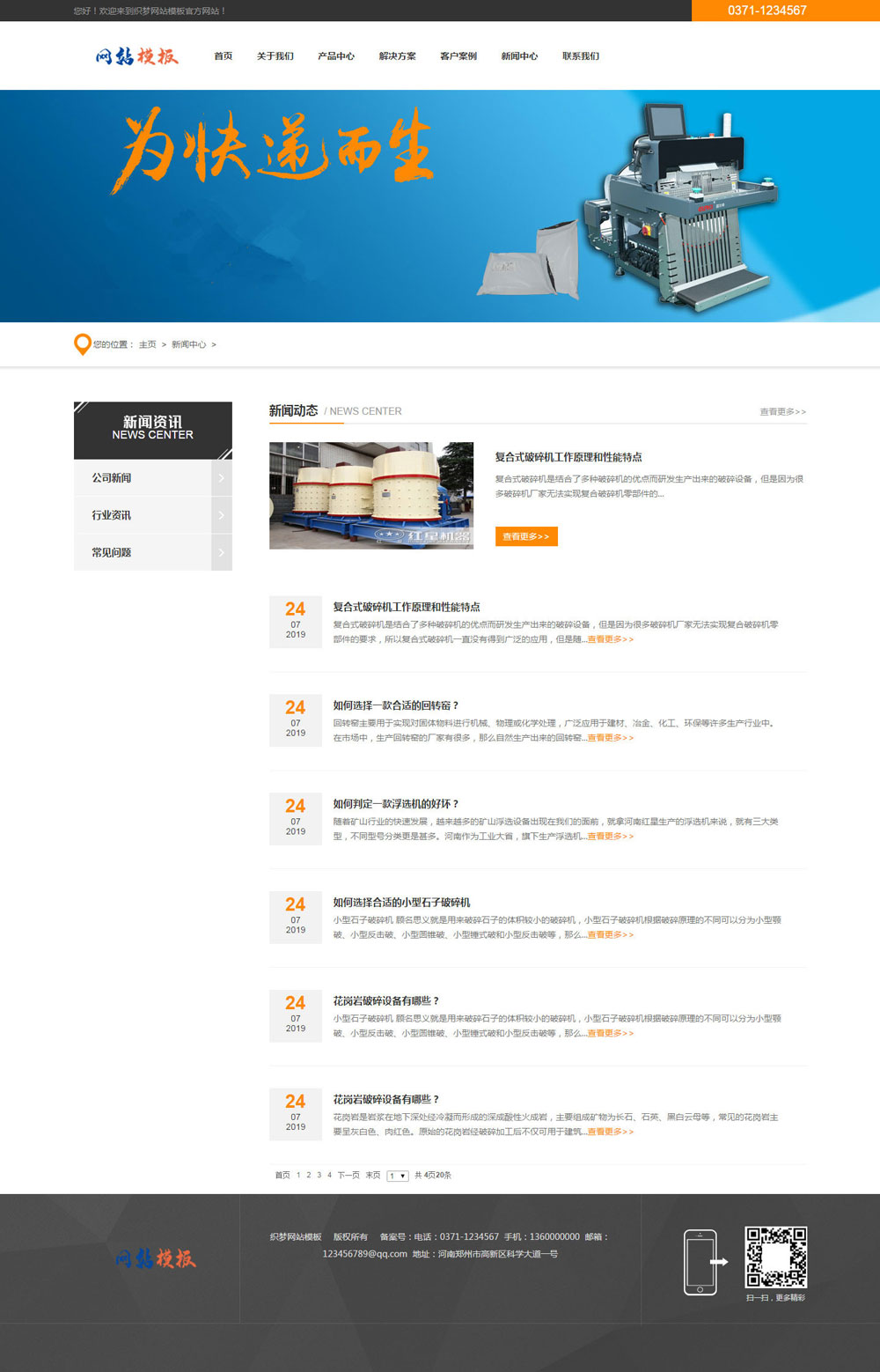 模板文件包含首页、关于我们类单页、图片案例列表页、案例详情页、新闻文章列表页、文章详情页等。